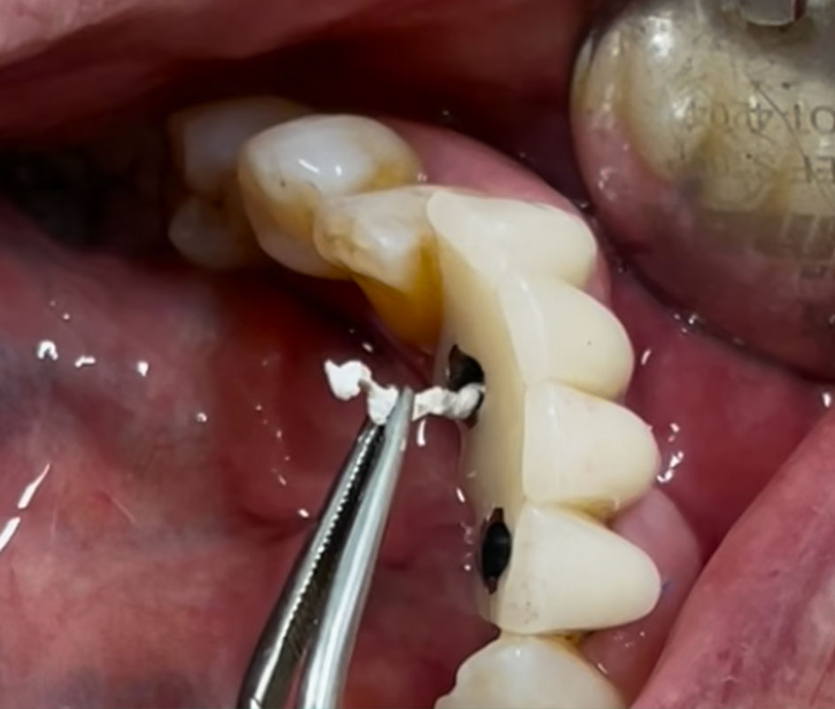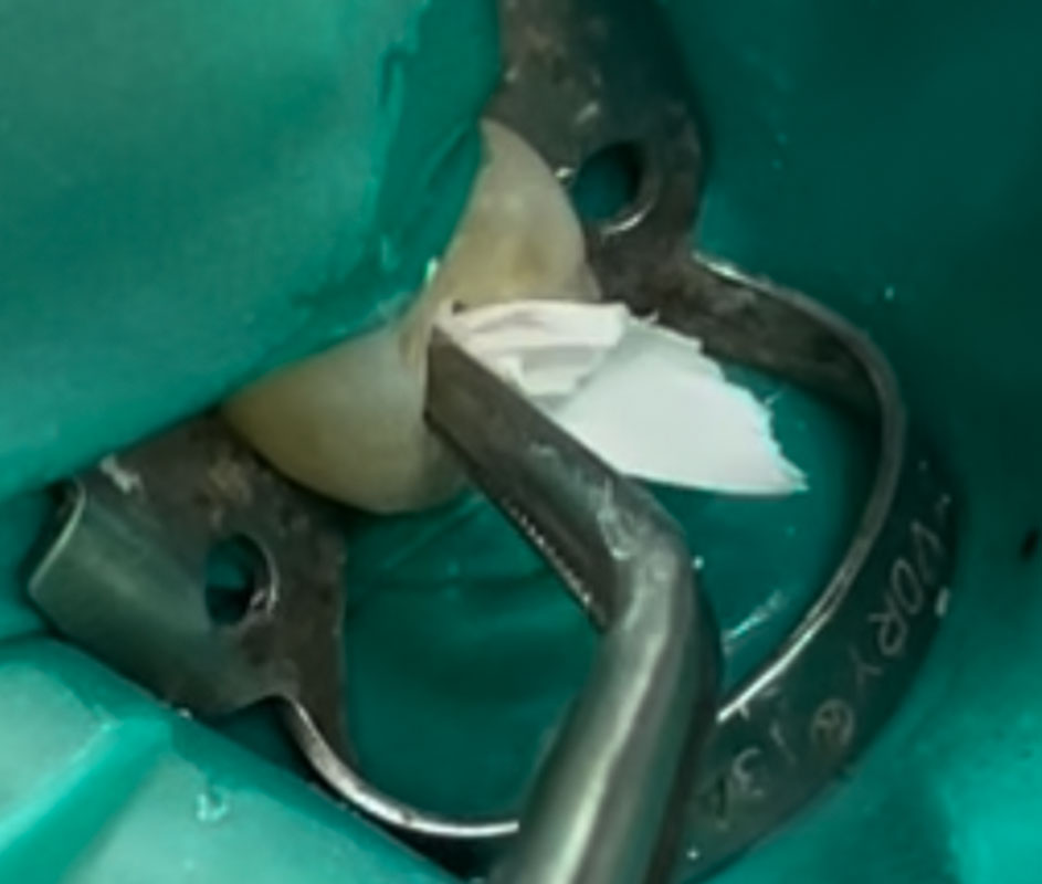 • Facile rimozione: è sufficiente esporre un capo del nastro TEFLODENT e trazionarlo